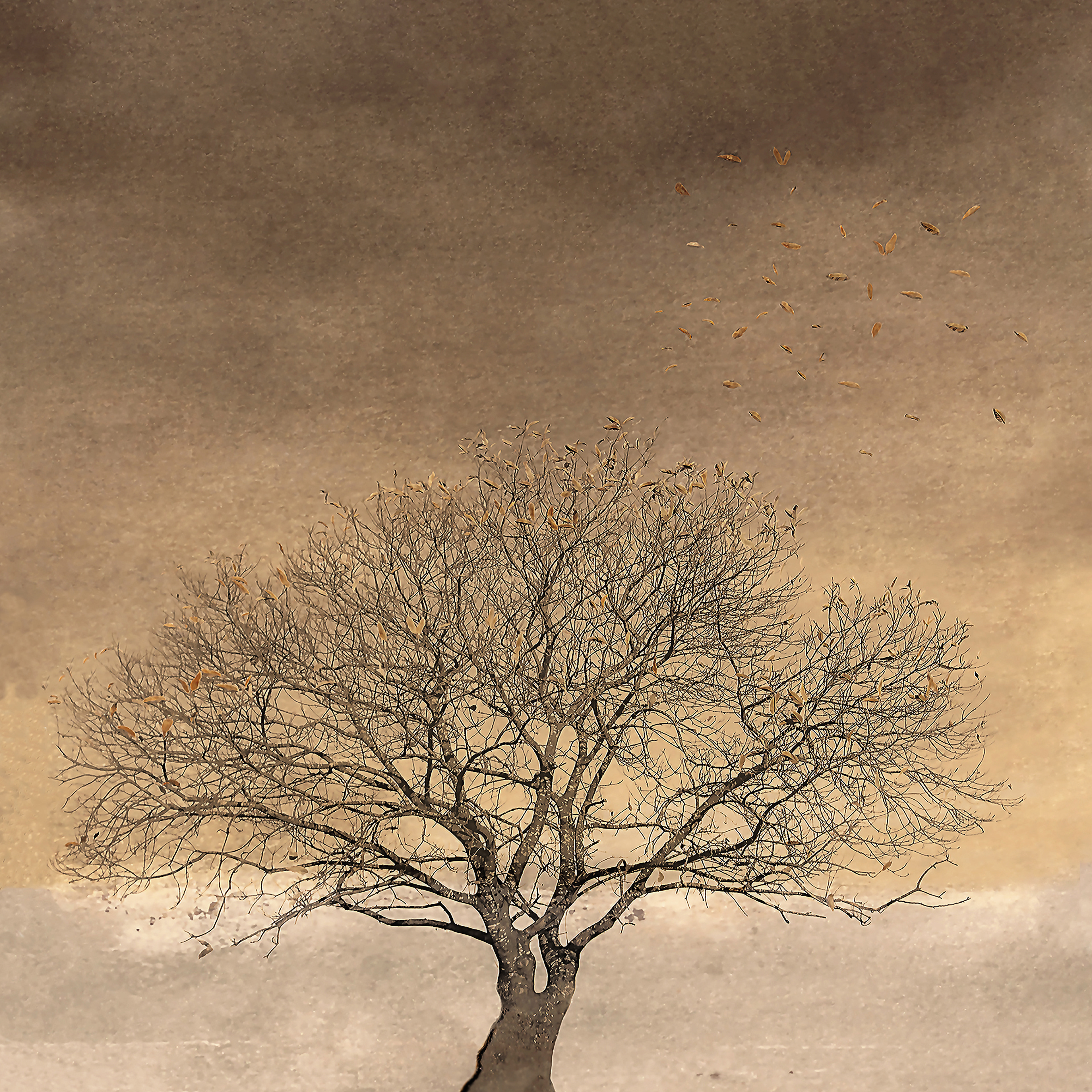 Autumn tree with gold leaf